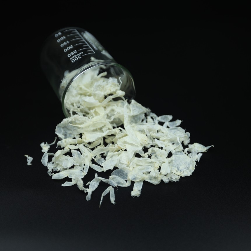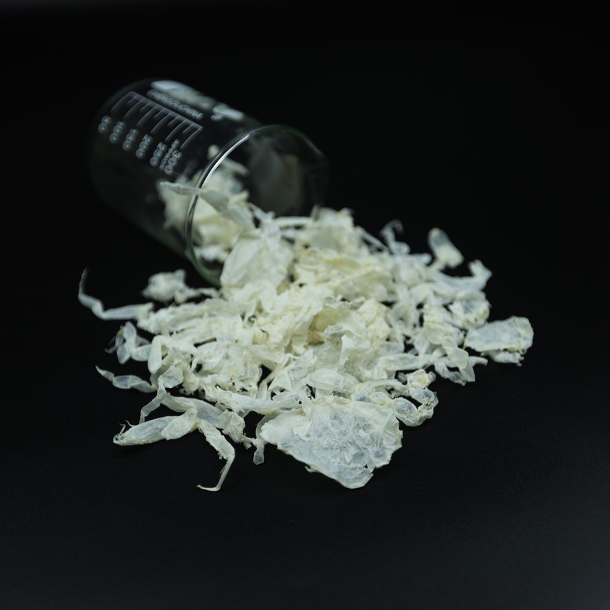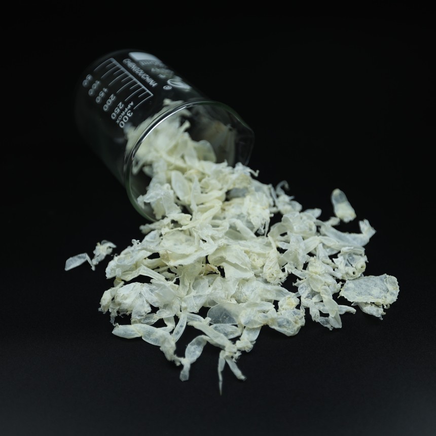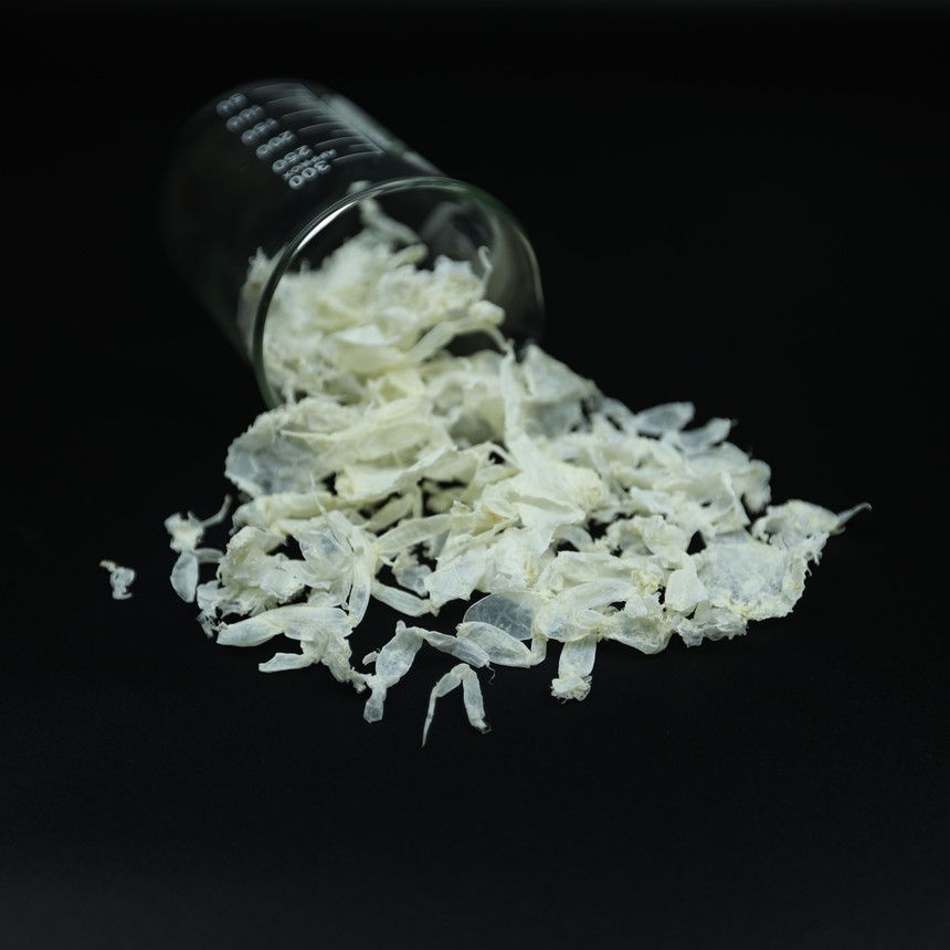 (1)简介 中文学名:几丁质、甲壳素 英文名称:Chitin 别名:壳多糖、几丁质、甲壳质、明角质、聚乙酰氨基葡糖 化学名称:β-(1,4)-2-乙酰氨基-2-脱氧-D-葡萄糖 分子式:(C8H13NO5)n (2)性状 外观为类白色无定形片状物质,无臭、无味。 能溶于含8%氯化锂的二甲基乙酰胺或浓酸;不溶于水、稀酸、碱、乙醇或其它有机溶剂。 (3)用途 甲壳素是制取壳聚糖、氨基葡萄糖系列产品的重要原料。可制作成甲壳素胶囊,甲壳素能改善消化吸收机能、降低脂肪及胆固醇的摄取、降低 血压、调节血脂、促进溃疡的愈合、增强免疫力、降低血压,提高胰岛素利用率,有利于糖尿病的防治等。 甲壳素应用范围很广泛,在工业上可做布料、衣物、染料、纸张和水处理等。在农业上可做杀虫剂、植物抗病毒剂。渔业上做养鱼饲料。化妆品美容剂、毛发保护、保湿剂等。医疗用品上可做隐形眼镜、人工皮肤、缝合线、人工透析膜和人工血管等。 (4)储运 储存于阴凉、干燥、通风良好的区域,远离不相容的物质。运输时轻装轻卸,不得与有毒、有害物质和易污染物品混合装运,严禁淋雨。 (5)产品质量指标